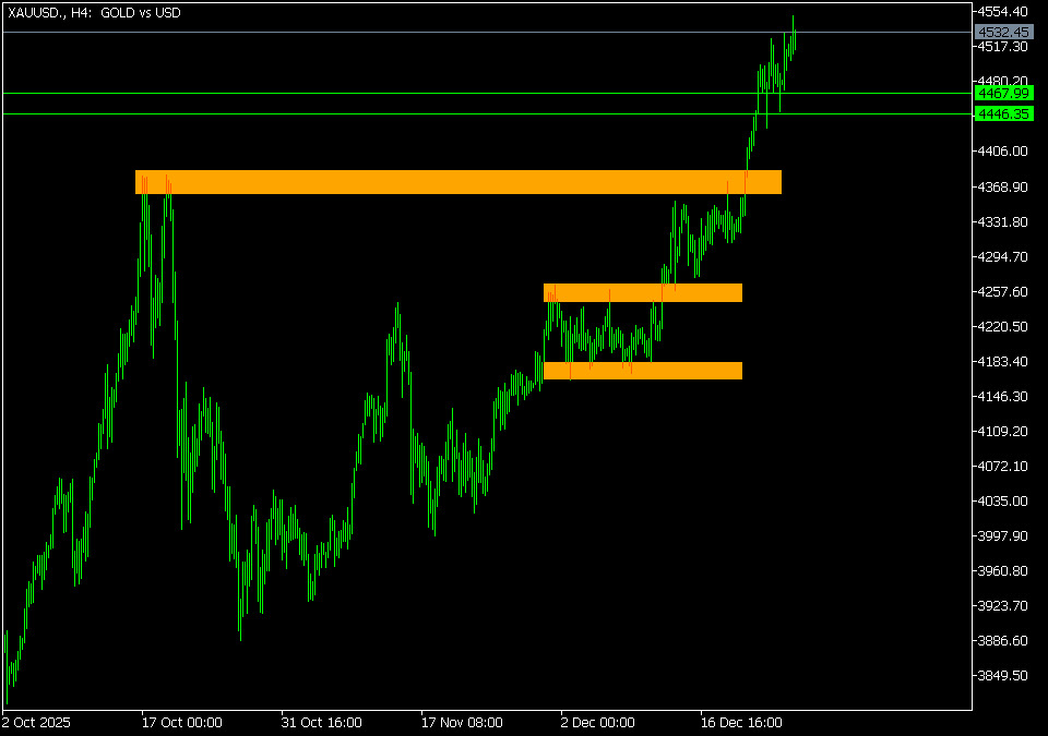 هبوط محتمل: كسر 4,446 قد يدفع السعر لإعادة اختبار مناطق 4,330 – 4,300.