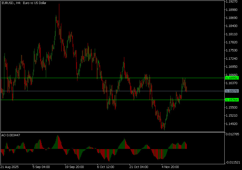 الزوج يتحرك في نطاق هابط على المدى القصير. الصعود الأخير فقد زخمه قرب المقاومة 1.1655–1.1666، بينما يتداول السعر حاليًا فوق الدعم الأوسط 1.1607، مع بقاء 1.1576 كمنطقة ارتكاز رئيسية.