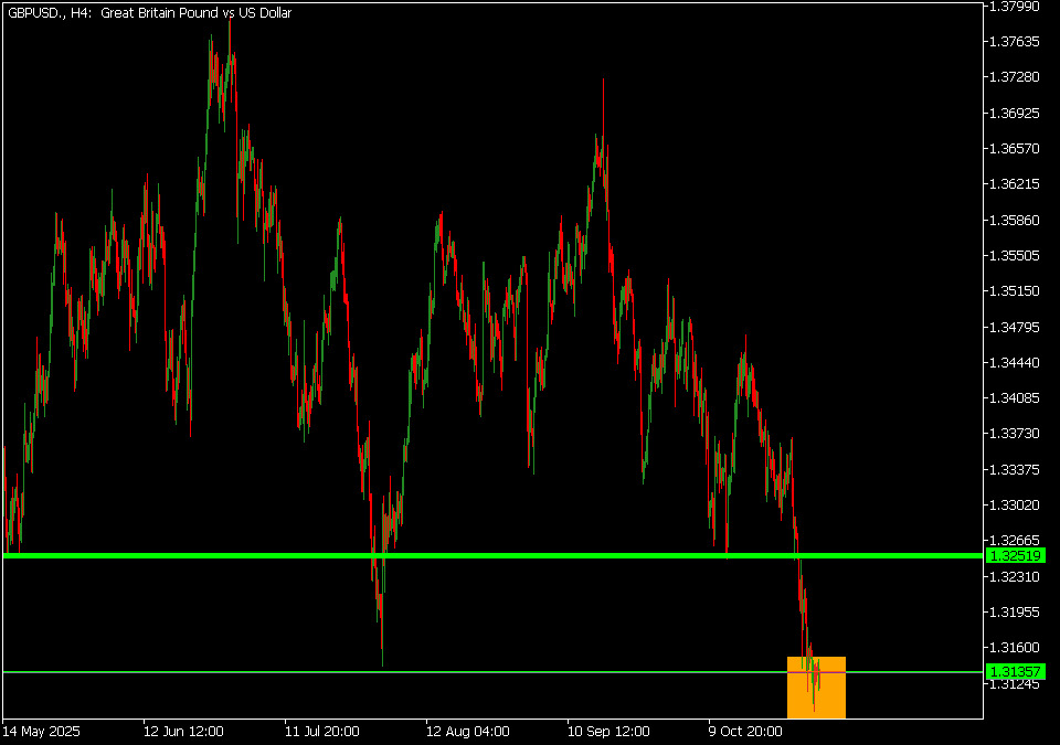 Cable is hovering around a notable demand area near 1.3135–1.3160 after a sharp decline. Consolidation above this zone could allow for a corrective rebound, but the broader picture stays bearish unless price can reclaim the 1.3250 area.
