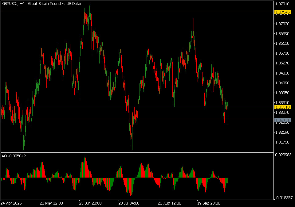 Cable slipped below 1.33310 and is trading around 1.3273, keeping sellers in control unless 1.33310 is reclaimed. A recovery above that pivot could trigger a broader rebound; otherwise the path remains lower‑tilted.