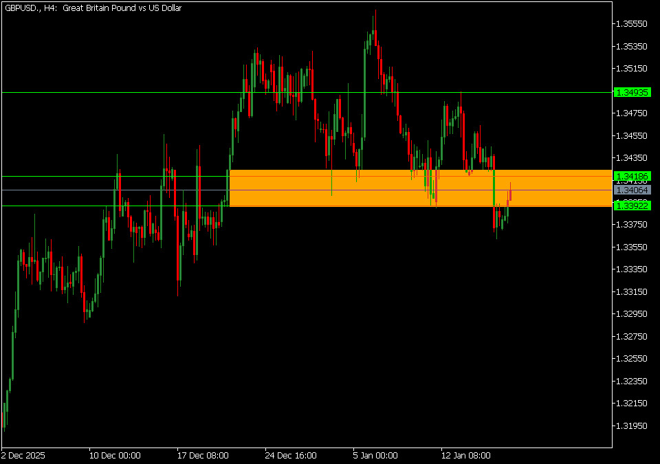 GBPUSD is trading sideways with a slight bearish tilt, hovering around a strong demand zone near 1.3415–1.3390.