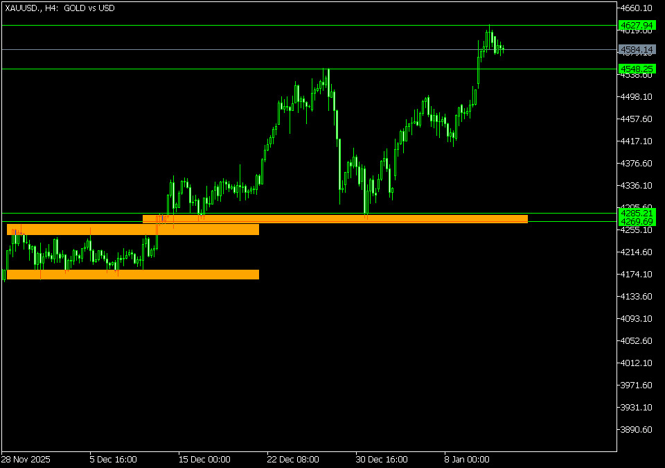 The broader trend remains clearly bullish, with price holding above the main demand zone around 4260–4285. The recent impulse pushed gold to fresh highs near 4625 before entering a natural consolidation phase.