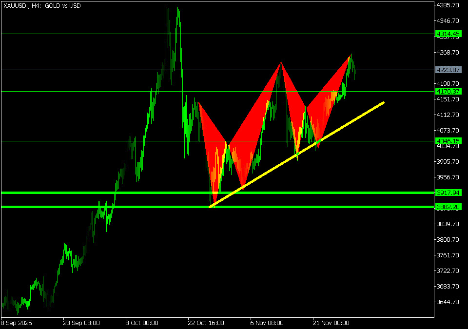 Bearish: A drop below 4170 followed by 4046 would test the trend, exposing 3918 then 3882.