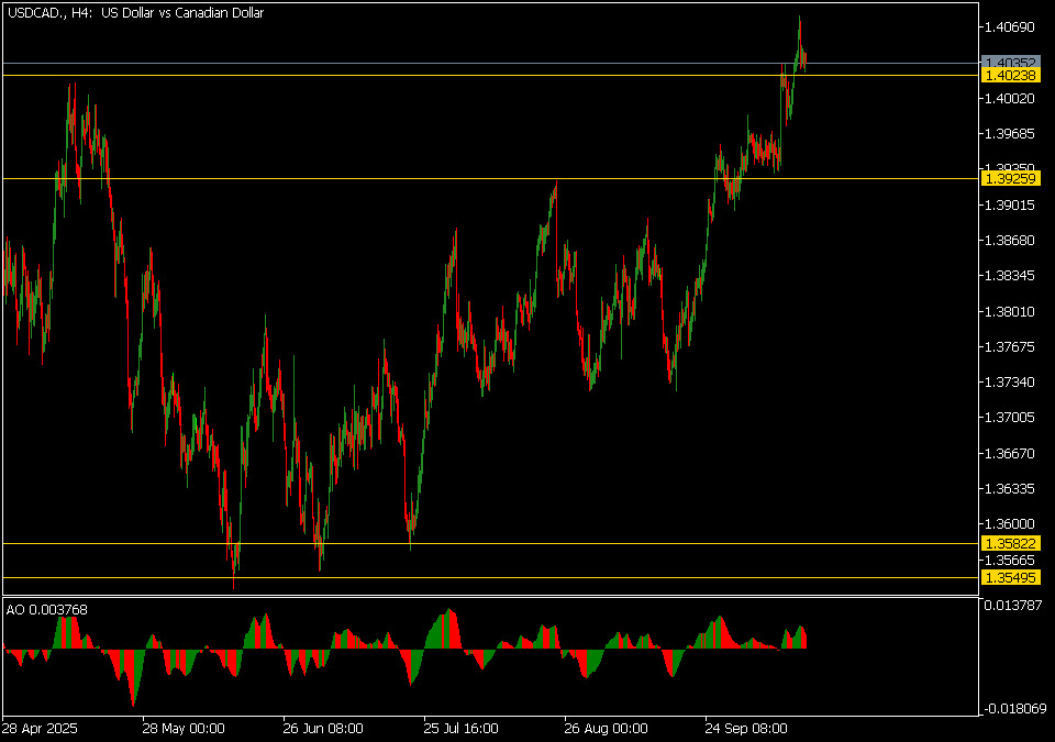 Bullish breakout above 1.40238 with 1.39259 acting as a nearby base. While holding above 1.40238, buyers retain the upper hand; losing it invites a corrective pullback.