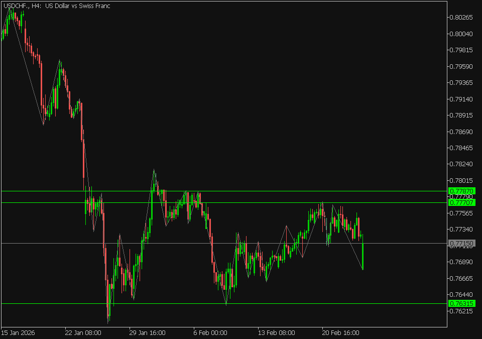The 0.7770–0.7780 zone acts as strong resistance. Key support stands at 0.7715, followed by 0.7630.
